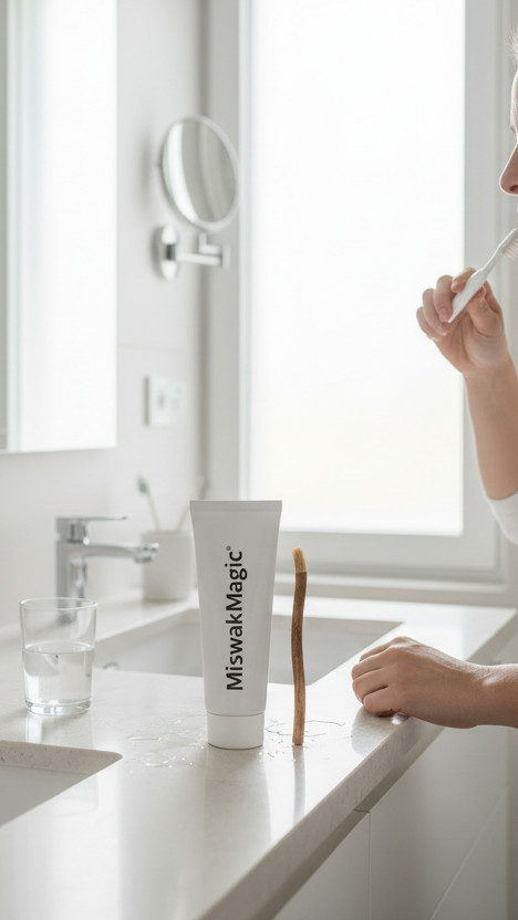 Inspiré par 7 000 ans de tradition, MiswakMagic™ réinvente le siwak en une formule moderne, naturelle et performante — une routine dentaire pure et innovante.